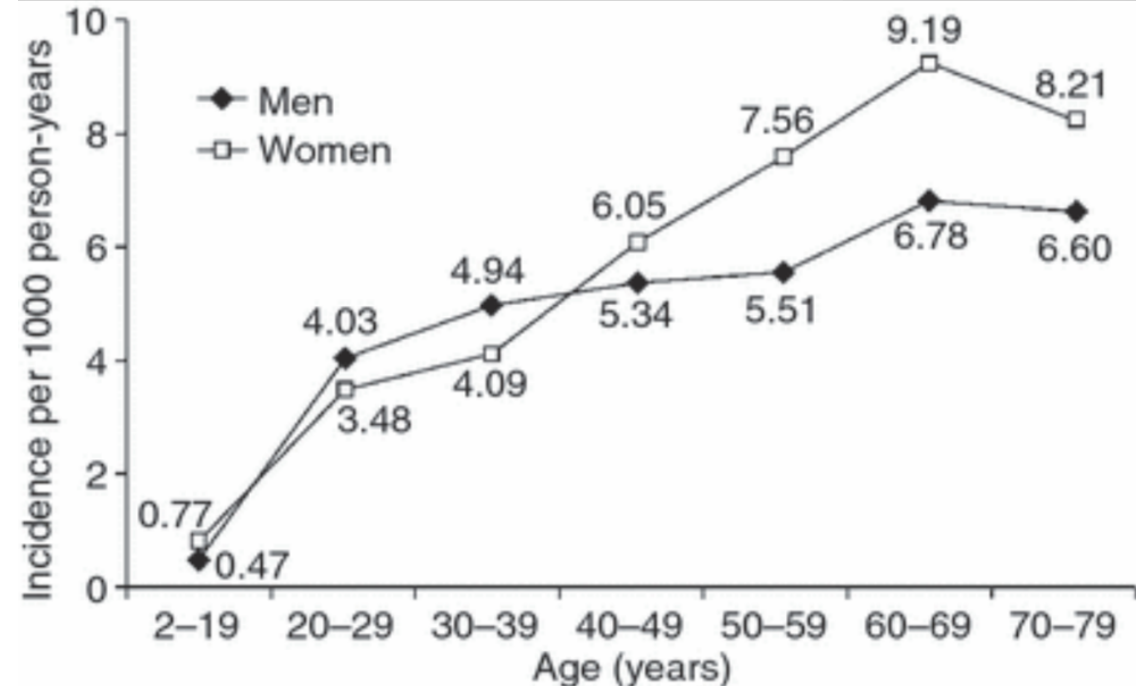 Figure 4. Incidence of gastroesophageal reflux disease diagnosis in UK general practice [29].