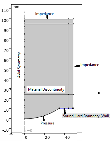 As shown in Figure 1, the experimental setup was designed to simulate a clinically relevant HIFU configuration. The geometry includes a concave transducer positioned to focus ultrasonic energy through a water coupling medium into a tissue phantom material. This axisymmetric setup mirrors actual HIFU therapeutic devices used in tumor ablation, prostate treatment, and other interventional procedures. The key elements include: (1) the concave spherical cap transducer design essential for acoustic focusing and concentrating energy at a specific focal point; (2) the multi-layer medium where the water-tissue interface represents a realistic scenario with acoustic impedance mismatch causing partial reflection and transmission; and (3) a computational domain with boundaries sufficiently large to accommodate the propagating wave without artificial reflections.