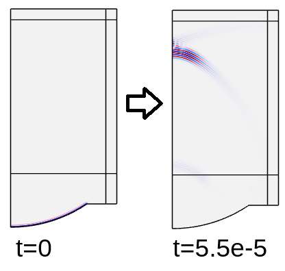 Figure 4. Propagation of the ultrasonic signal at initial and final times.