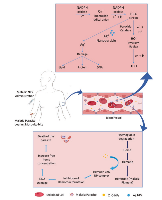 In the fight against malaria, the major challenge lies in the development of antimalarial drug resistance in malaria parasites, coupled with insecticide resistance in vectors. Over the years, nanotechnology advancements have given rise to novel prospects. Green nanotechnology-based acceleration of using metal NPs against many diseases and in vaccine development holds promise for new approaches against malaria parasites and vectors. Using non-hazardous or non-chemical reagents in the green synthesis of NPs makes them more effective, biocompatible, and technologically environmentally friendly.