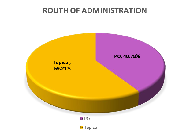 - (40.78%) Anti-Scabies agents were prescribed by Oral route as compared to Topical route (59.21%).