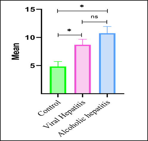 The observed AST predominance in alcoholic hepatitis is linked to increased mitochondrial and cytosol AST release and reduced ALT activity due to vitamin B6 deficiency associated with chronic alcohol consumption. Oxidative damage to mtDNA and respiratory chain complexes, decreased ATP synthesis, and altered mitochondrial dynamics are all indicators of ethanol-induced mitochondrial dysfunction, that enhances hepatocyte damage and stimulates the release of AST. These mitochondrial and enzymatic alterations, could be beneficial in distinguishing viral and alcoholic hepatitis. Findings of this study indicates the presence of biochemical patterns in viral and alcoholic hepatitis in individuals, highlighting the importance of liver function monitoring for etiological differentiation [19,20].