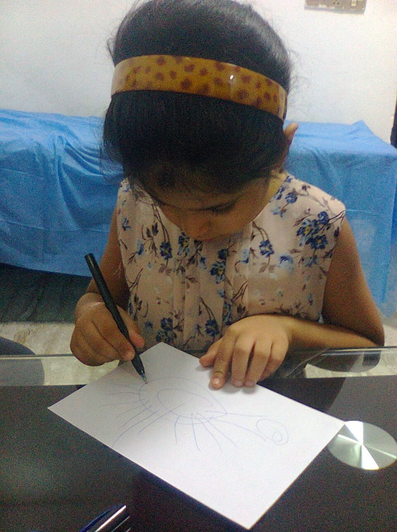 Figure-1C. After cure of autism, at the clinic, she accepted to take a pen to draw something she likes.