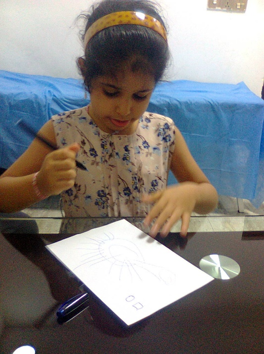 Figure-1D. After cure of autism, at the clinic, she accepted to take a pen to draw something she likes.