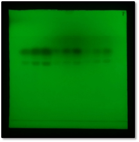 Figure 4. TLC run with mobile Methanol: Chloroform: Acetic acid.