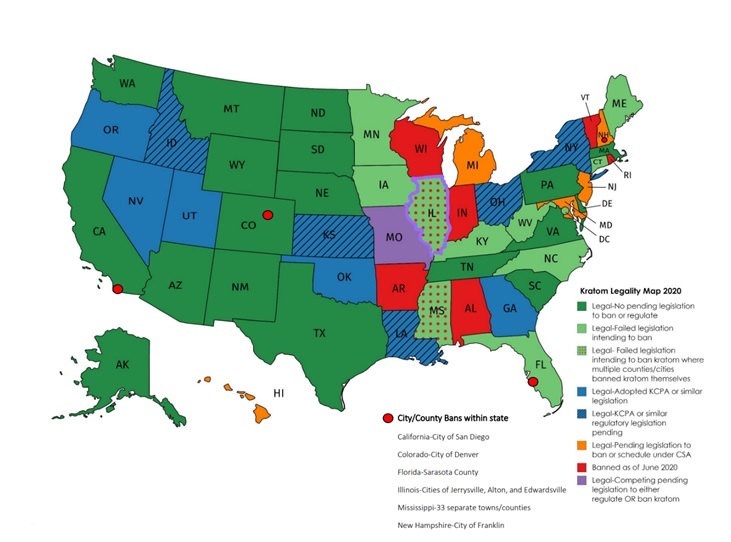 Figure 1: Kratom Legality Map 2020 (last updated October 2020).