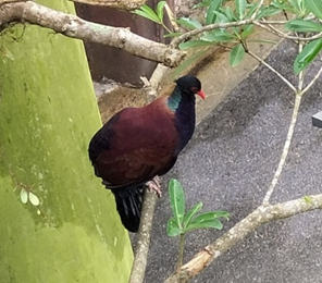 1. Forked neck feathers 2. Close relative to pink pigeon 3. Internationally least concern |