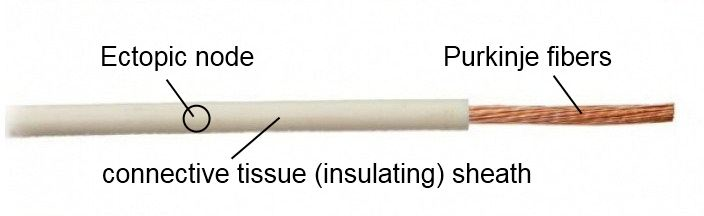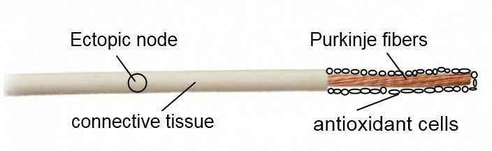 The question is, how will the oxidation of the ectopic node and subsequent activation of arrhythmia occur? That's right, the weak link is the Purkinje fibers, through them the ectopic node will be oxidized!