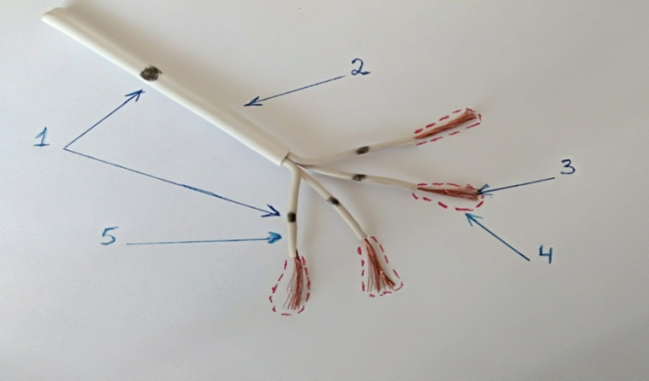 Figure 4. Note: The figure shows a rough model of the “antioxidant barrier”, let's assume it is the Bachmann pathway. 2-5. Connective tissue sheath. 4. T cells. 1. Ectopic nodes (1 distal and 4 proximal), 3. Purkinje fibers.